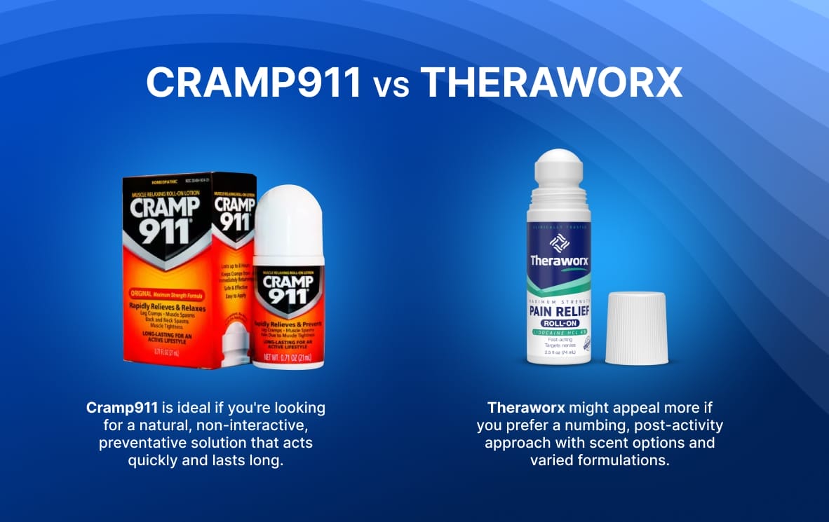 When it comes to cramp relief products, two names consistently rise to the top: Cramp911 and Theraworx. Both promise fast, effective relief, but which one truly delivers on that promise?
